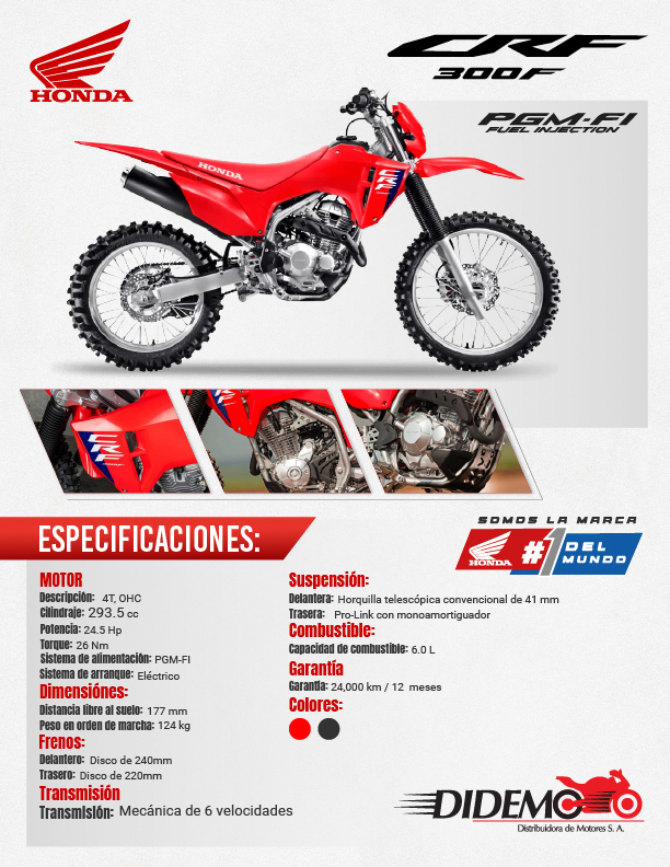 DIDEMO es distribuidor oficial de motocicletas Honda en Honduras, con talleres, servicios y repuestos en todo el país.